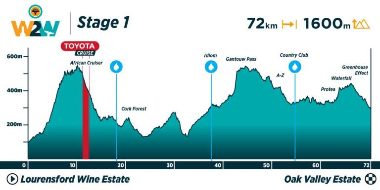 The opening stage of the 2022 FNB Wines2Whales showcases new trails in combination with old favourites as it takes the teams from Lourensford into the Elgin plateau and to the race village at Oak Valley Estate 72 kilometres and 1 600 metres of climbing later. The start of Stage 1 meanders through the estate before climbing to the heights of Lourensford; thereafter the route twists downhill; taking in the African Cruiser, the race’s inaugural Toyota Cruise section, then Formula-E and Tough-ER complete the descent to waterpoint 1, at the Cork Forest. The Cashflow boulders and Vergelegen’s Game Park follow, then new trails lead into Journey’s End. The climbing resumes in earnest on the approach to the Gantouw Pass, though riders will be well advised to take in the views from the Idiom waterpoint’s lofty perch below the day’s signature feature. After hot-footing it up and over the World Heritage site, hopefully without any cramping, Grabouw’s A-Z trails feature and provide thrills aplenty including a rip around the Eikenhof Dam. The Palmiet, Protea and Waterfall singletracks then lead toward Oak Valley, where Greenhouse Effect completes the stage’s roll call of trails.
